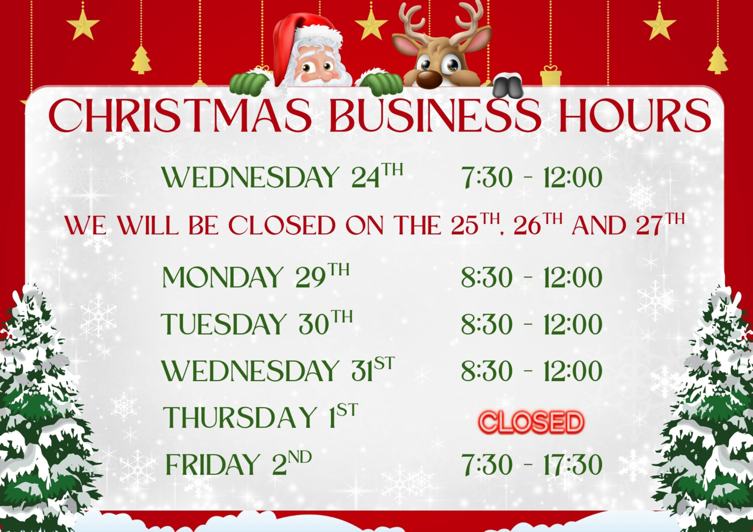 Christmas Business Hours 2025
