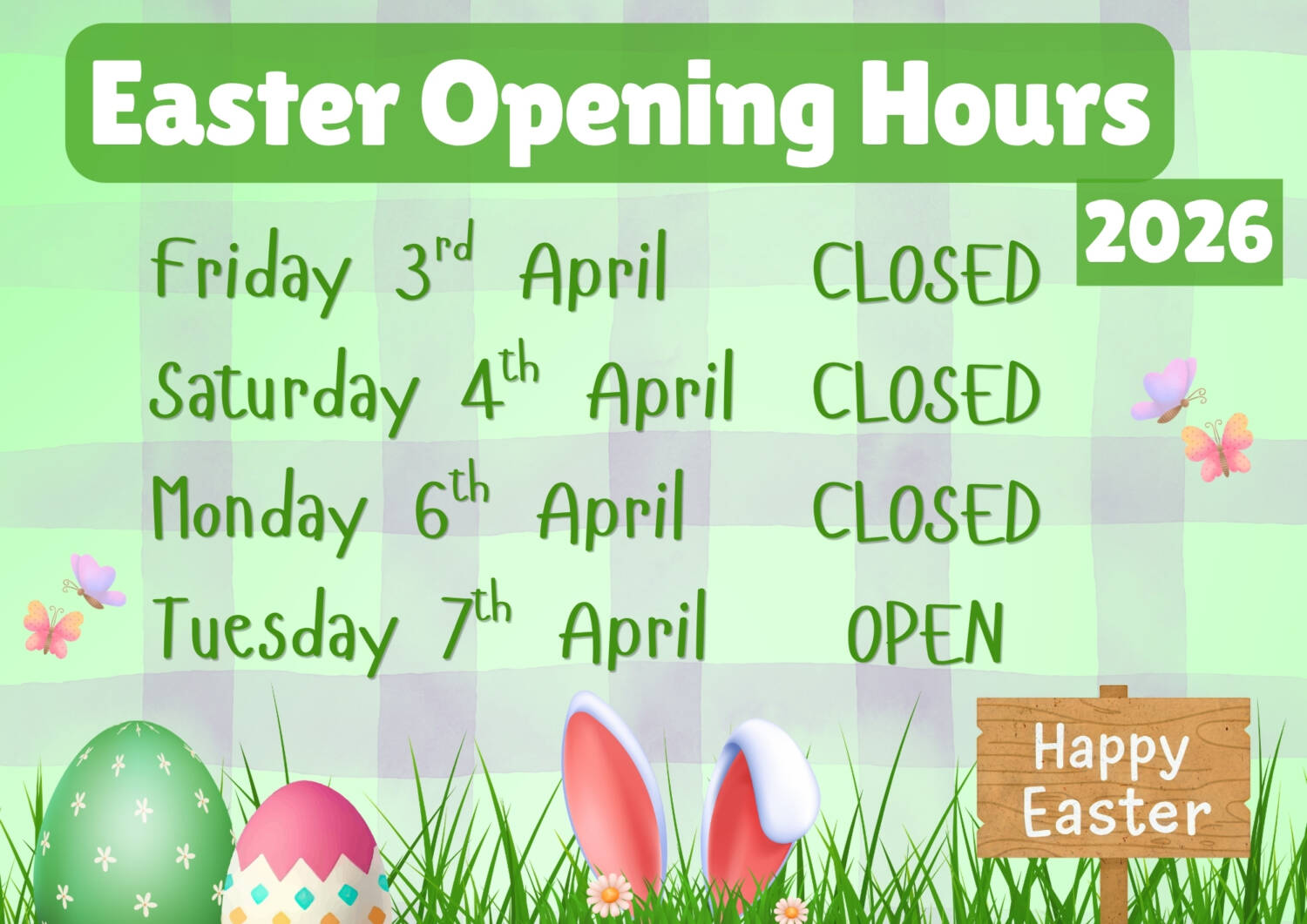 Easter Opening Hours 2026